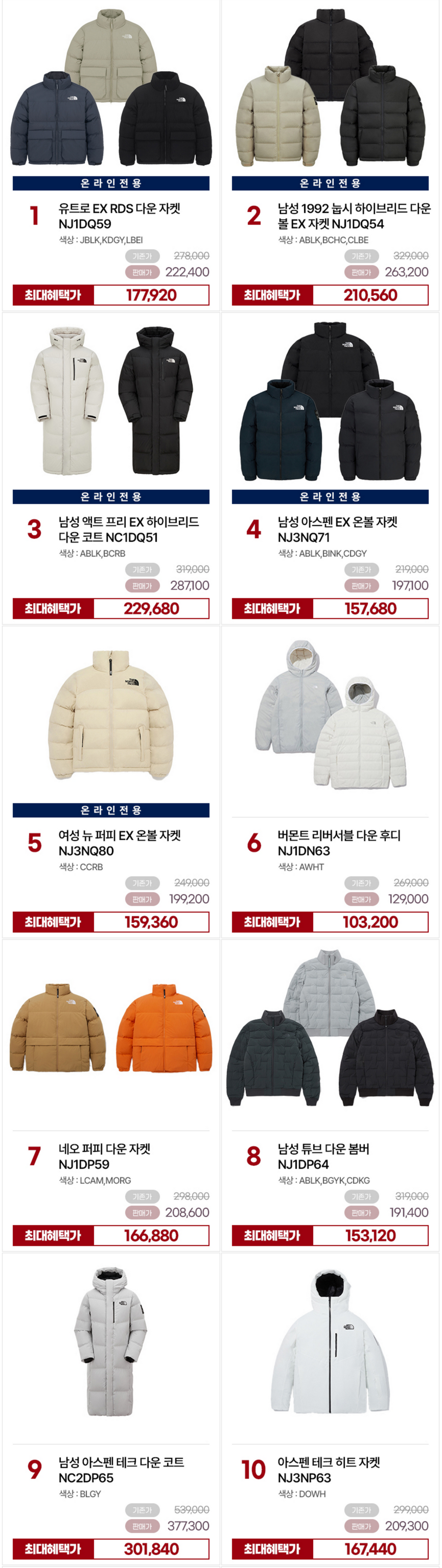 노스페이스 24년 겨울용품 세일을 진행합니다.