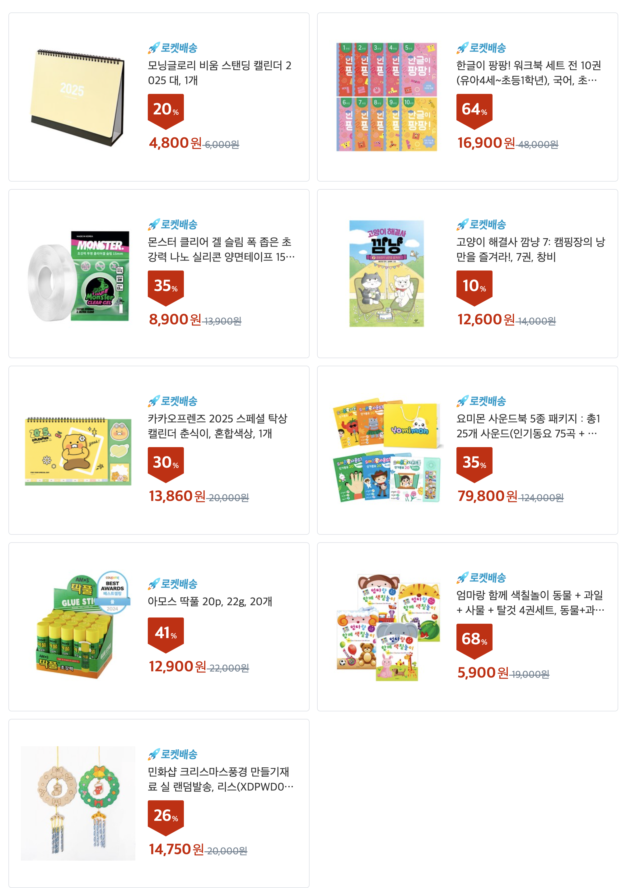 쿠팡에서 도서와 문구 제품을 최대 65% 할인 합니다.